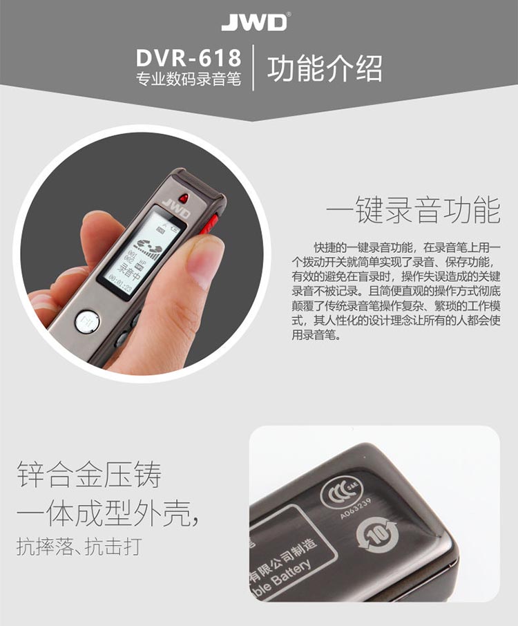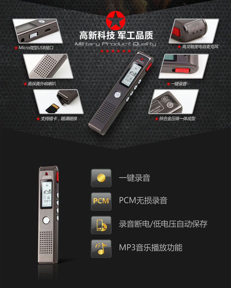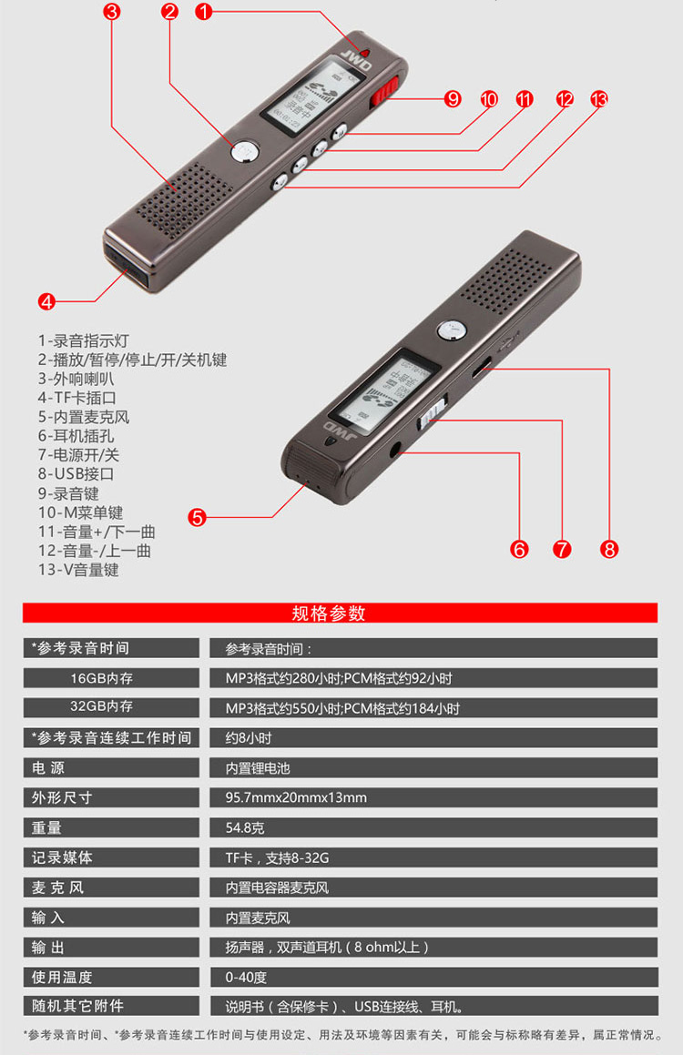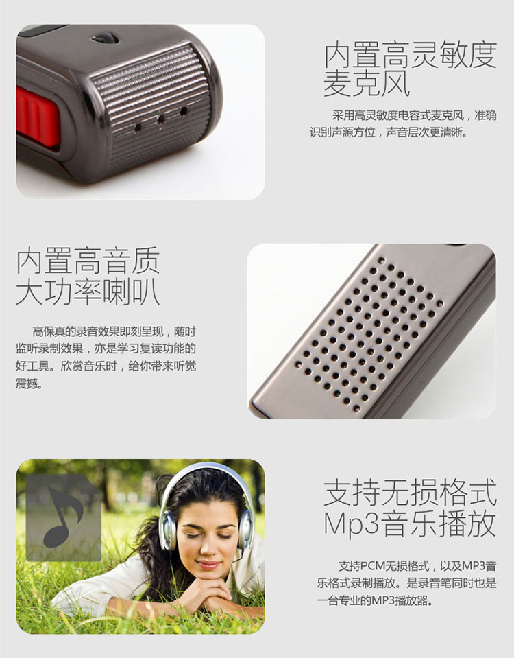 特性         32GB 遠距離降噪PCM無損錄音筆