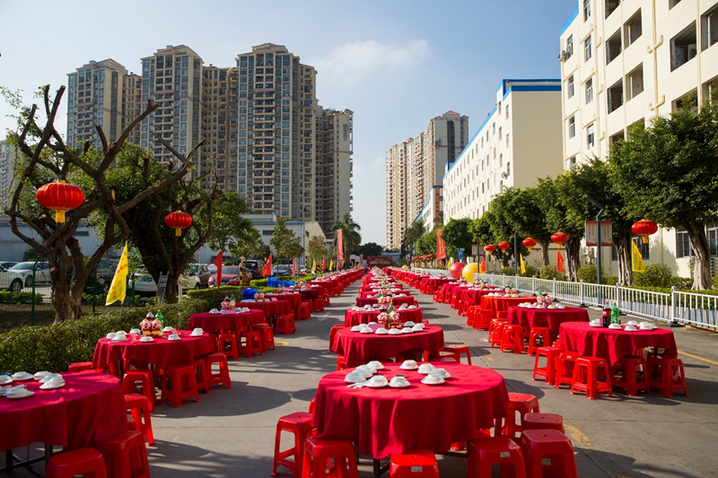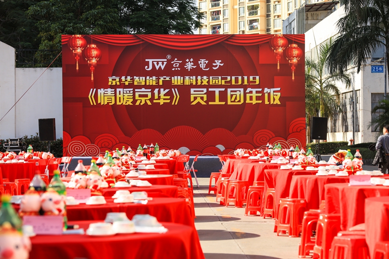 2019年1月11日下午,鳥語花香、陽光明媚。京華智能產業科枝園區彩旗獵獵,燈籠高掛,處處張燈結彩,一副熱鬧非凡、美輪美奐的景象。遠遠望去,京華大道上綿延幾百米,整齊地排列著160張鋪著大紅臺布的餐桌,猶如幾條巨大無比的彩帶在京華科技園區飛舞,場面頗為壯觀。