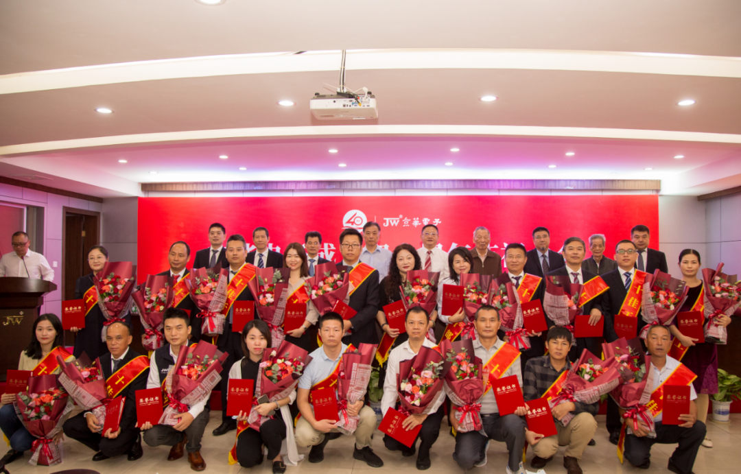 今天,是深圳市京華電子股份有限公司成立40周年紀念日,公司在京華智能產業(yè)園舉辦40周年慶祝大會。會議現(xiàn)場20名在京華電子工作10年以上,為公司作出突出貢獻,做出顯著成績的干部和員工分別被授予“十佳干部”“十佳員工”稱號并獲得了表彰。京華電子干部及黨員共計120余人參加會議,歷任老領導陳松源、田進、黃思頖受邀出席見證。