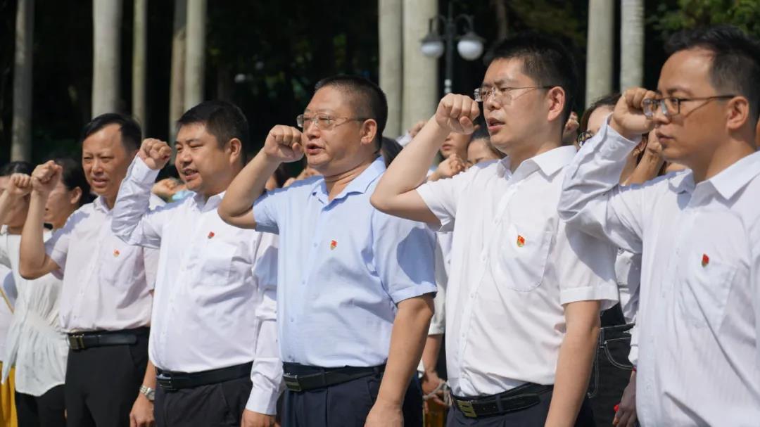 全體黨員面對黨旗莊嚴(yán)宣誓
