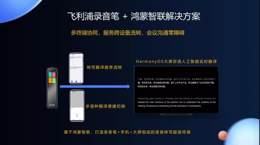 當(dāng)錄音筆與鴻蒙系統(tǒng)進(jìn)行聯(lián)動(dòng)后,我們發(fā)現(xiàn)了更寬廣的應(yīng)用場(chǎng)景,基于鴻蒙互聯(lián),我們可以打造錄音筆+手機(jī)+大屏組成的語音轉(zhuǎn)寫超級(jí)體驗(yàn)。