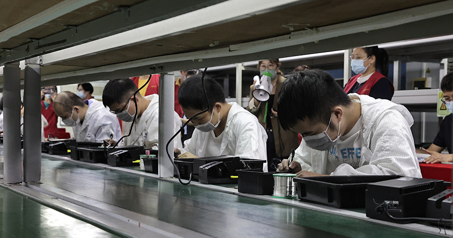 “螺絲不能歪斜”“焊點的外觀要光滑、圓潤、清潔、均勻”“氣泡直徑不能超過3mm”…… 驟降的氣溫抵擋不住選手們的參賽熱情,在京華電子智能產業科技園的生產車間賽場上,裁判員們正在認真地“摳”著每一個細節。58名技能參賽選手就數碼貼膜技術、焊接技術和智能裝配技術3個項目展開激烈角逐。