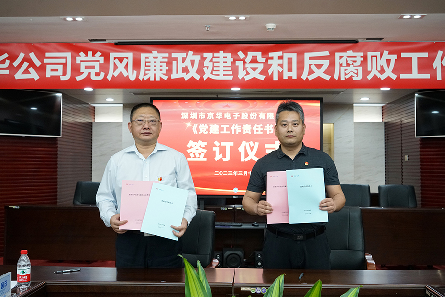 會上,王國慶同志與京華公司各黨支部書記簽訂了《黨建工作責任書》和《全面從嚴治黨與廉潔從業責任書》。