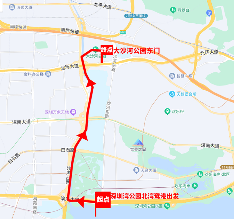 本次徒步路線以深圳灣公園北灣鷺港為起點(diǎn),穿越大沙河生態(tài)長(zhǎng)廊,以大沙河公園東門為終點(diǎn),全程約6公里。深圳灣公園是深圳著名的濱海休閑帶景觀,與香港隔海相望。大沙河,享有“深圳塞納河”的美譽(yù)。其西岸是南山科技園區(qū),匯集了眾多世界知名的高科技公司,是深圳最富活力和創(chuàng)造力的地方之一。