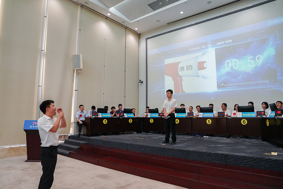 各參賽隊伍沉著應戰(zhàn),在必答題環(huán)節(jié)穩(wěn)定發(fā)揮,在實操環(huán)節(jié)精準演示,在風險題環(huán)節(jié)迎難而上,對答如流的情景贏得陣陣喝彩。穿插在競賽中的觀眾互動環(huán)節(jié)調節(jié)了氣氛,增加了觀眾的參與感,于潛移默化中普及消防知識。