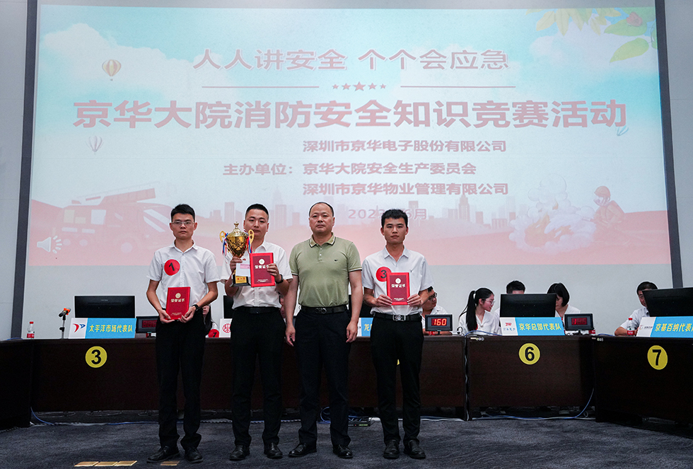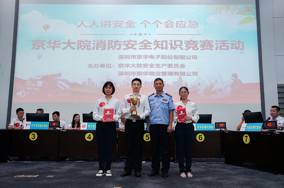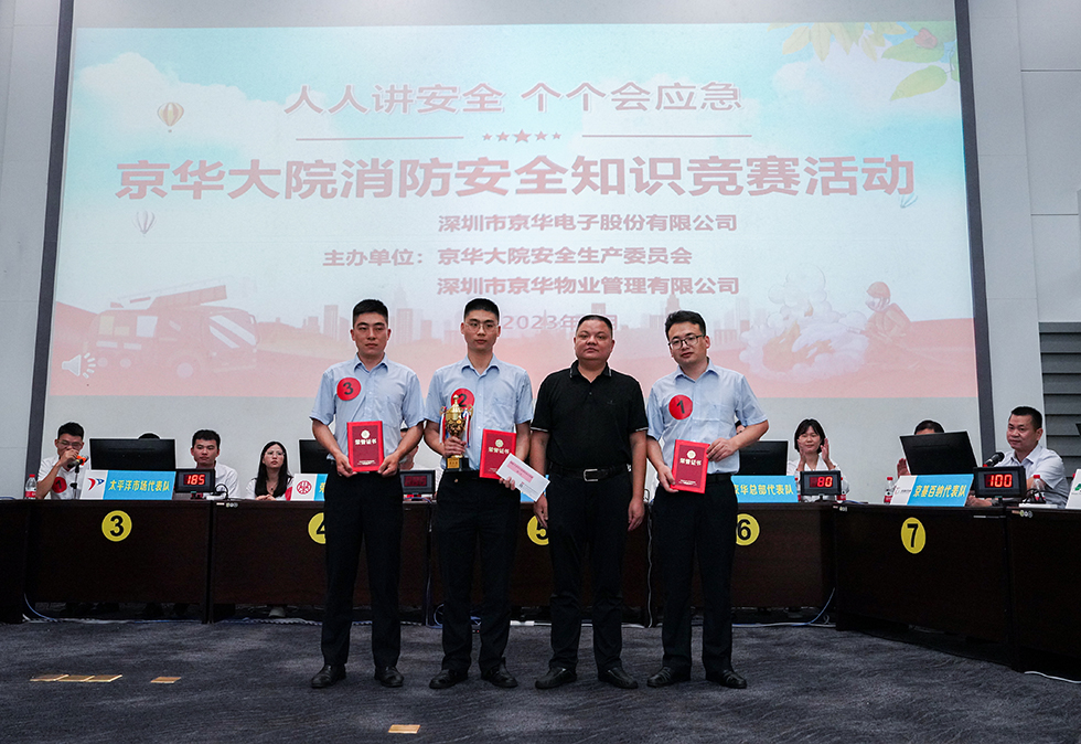 為進一步掌握安全生產常識,增強消防安全意識,提高消防安全防范能力,認真貫徹落實2023年“安全生產月”活動,6月21日下午,京華公司、京華大院安全生產委員會,京華物業(yè)公司聯(lián)合舉辦消防安全知識競賽活動。京華公司黨委書記、總經(jīng)理王國慶,京華公司副總經(jīng)理、京華物業(yè)總經(jīng)理滕立軍,安全生產辦公室成員和京華大院各參賽隊伍及其領導出席了本次活動。活動特邀評委深圳市福田區(qū)安委辦副主任、應急管理局副局長張志云,華強北街道應急辦副主任唐根華,華強北派出所副所長李斌,華強北派出所福強警區(qū)警長曾凱蒞臨現(xiàn)場指導。