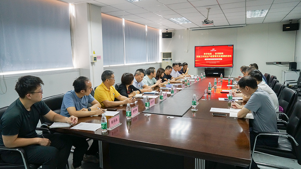 7月7日,京華公司黨委書記、總經理王國慶同志到京華信息和京華數碼兩家公司調研指導,聽取黨建工作及生產經營情況匯報并舉行交流座談會。