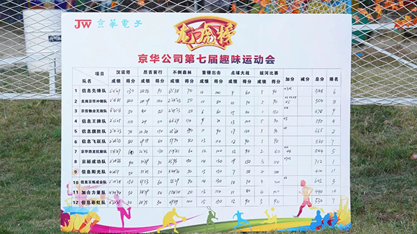 經過一天激烈的角逐,京裕成功隊以總積分712分的高分位列榜首,奪得冠軍。信息旗勝隊和信息百煉成金隊分別以665分、602分奪得亞軍和季軍。京華公司黨委書記、總經理王國慶,黨委副書記、紀委書記任剛,工會主席張光奎分別為冠軍、亞軍、季軍頒獎。