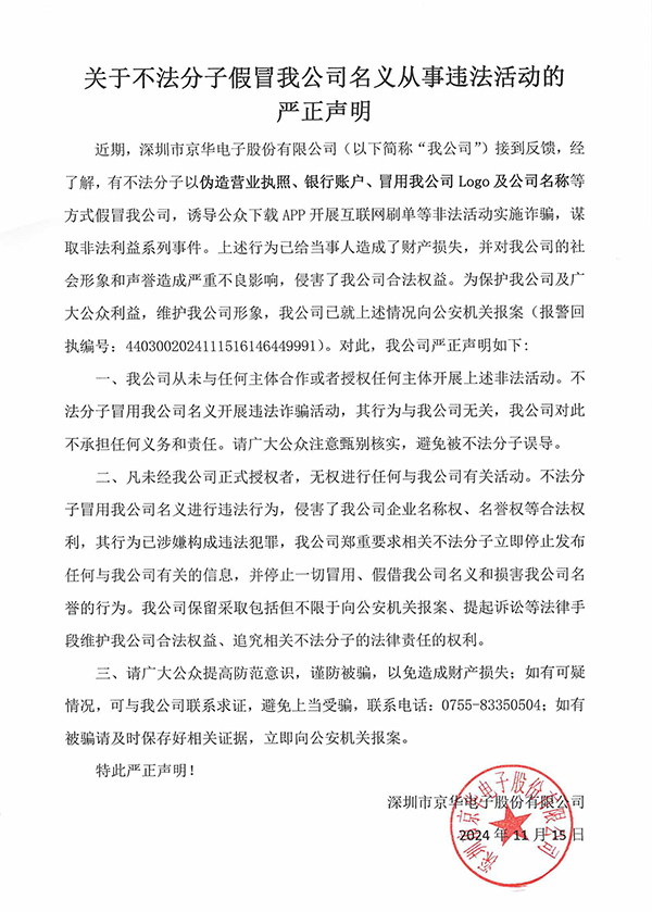 關(guān)于不法分子假冒我公司名義從事違法活動的嚴正聲明